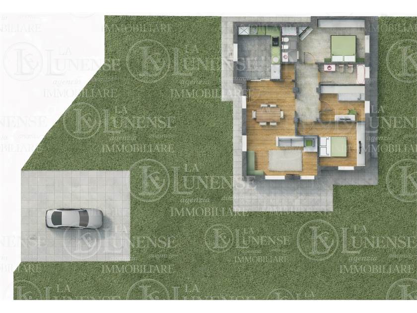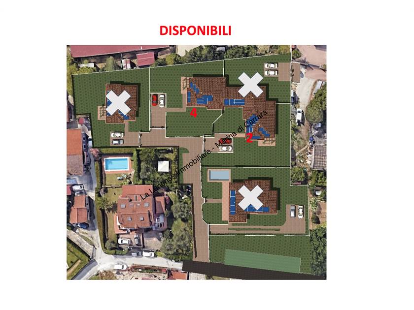 La villa internamente è così distribuita: ingresso in ampio e luminoso soggiorno con cucina a vista, bagno della zona giorno, disimpegno, bagno della zona notte e 3 camere di cui una con cabina armadio.