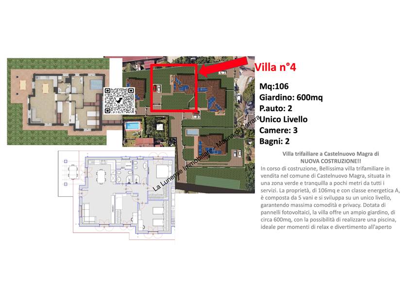 Bellissima villa trifamiliare (libera su tre lati) loc.Palvotrisia, situata in una zona verde e tranquilla a pochi metri da tutti i servizi. La proprietà, di 106mq e con classe energetica A, è composta da 5 vani e si sviluppa su un unico livello, garantendo massima comodità e privacy. Dotata di pannelli fotovoltaici, la villa offre un ampio giardino, di circa 600mq, con la possibilità di realizzare una piscina, ideale per momenti di relax e divertimento all'aperto.